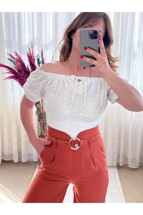BEYAZ FİSTO BLUZ - 15435 - Bluz - KARPUZ KOL YAKASI LASTİKLİ BELİ GİPELİ TAM KALIP GÖRSELDE KULLANILAN 36..