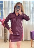 BORDO RENGİ DERİ CEKET GÖMLEK