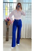 MAVİ KIRMIZ ÇİÇEK DESENLİ KORSE GÖMLEK