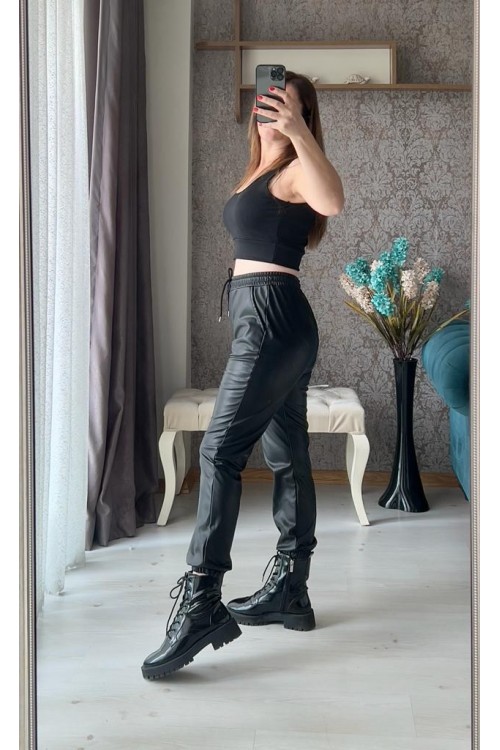 SİYAH JOGGER DERİ PANTOLON - JOGGER01 - - İÇİ SÜET DOKUSU YUUŞAKGENİŞ KALIP BİR BEDEN KÜÇÜK TERCİH EDEBİLİR..